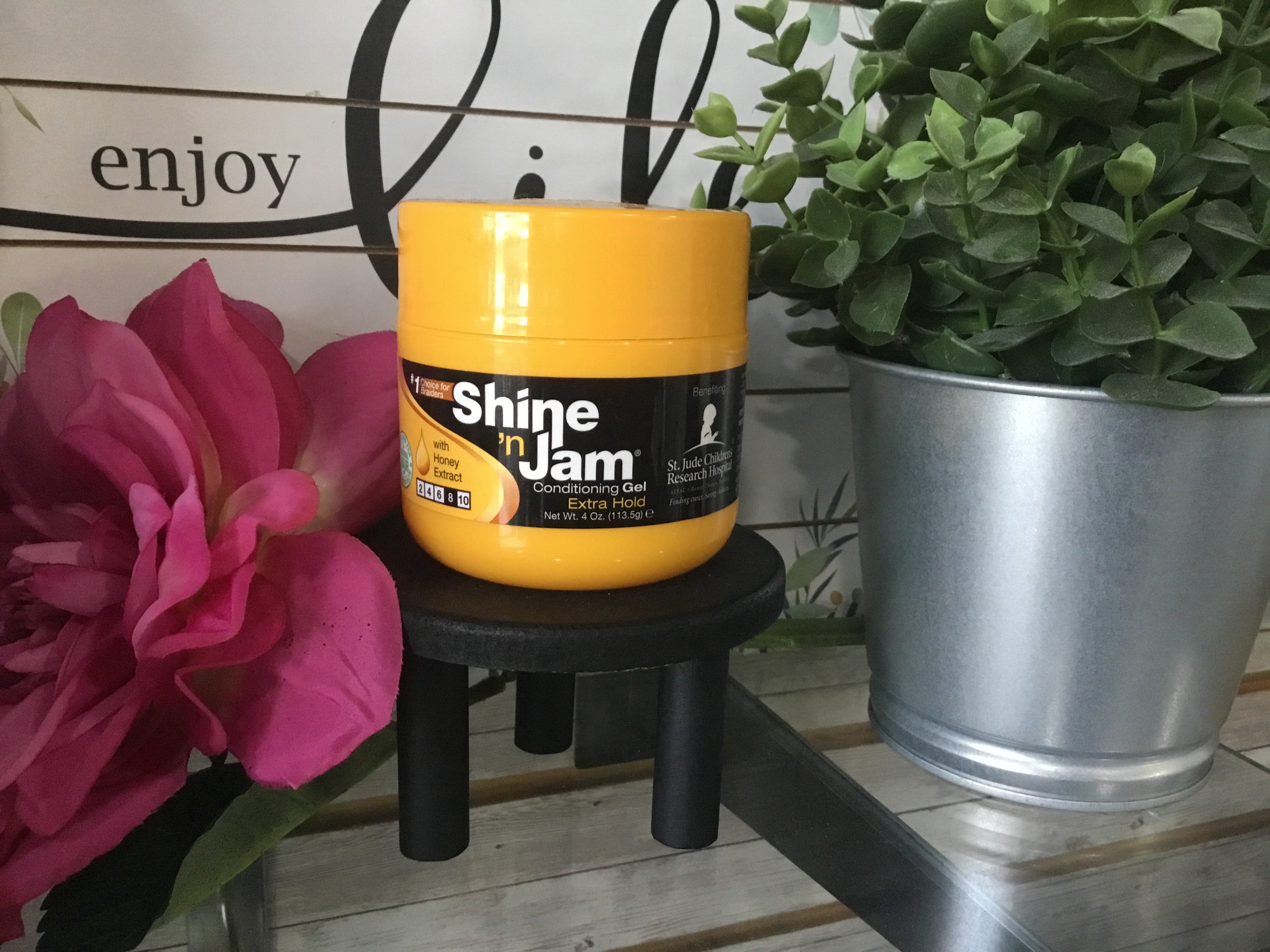 Shine ‘n Jam is the styling product you have been waiting for! This moisturizing, non-flaking gel has an extra firm hold that works great on coarse to resistant hair. Enhanced with Honey Extract to help and add a healthy looking shine. Great for soft waves, braids, locs, twists or any style your heart desires.